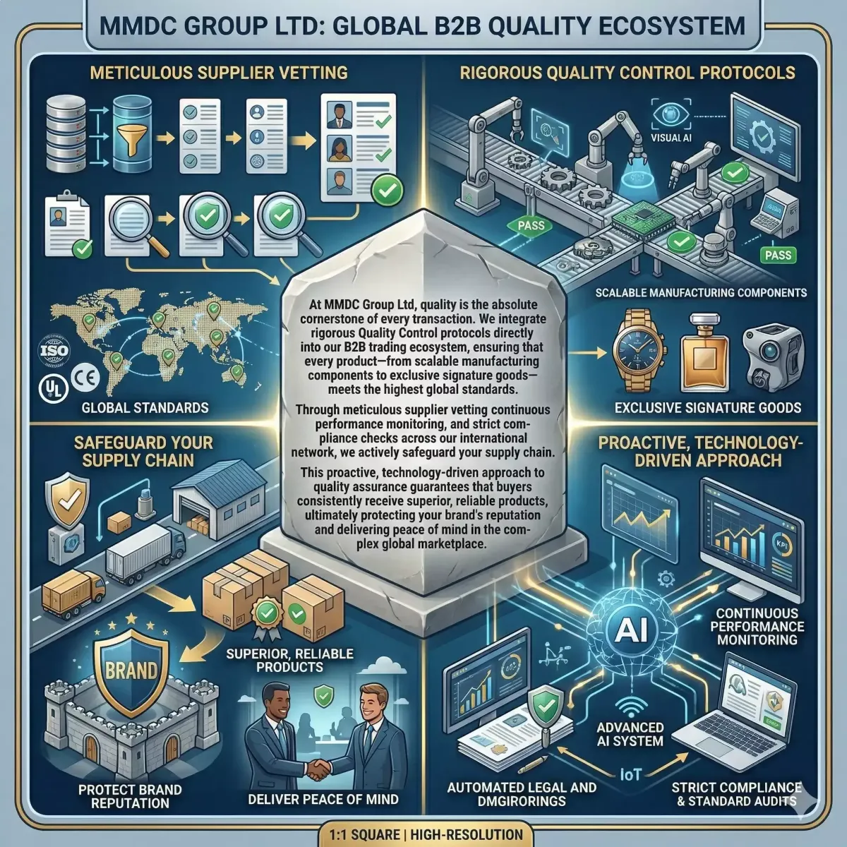 At MMDC Group Ltd, quality is the absolute cornerstone of every transaction. We integrate rigorous Quality Control protocols directly into our B2B trading ecosystem, ensuring that every product—from scalable manufacturing components to exclusive signature goods—meets the highest global standards. Through meticulous supplier vetting, continuous performance monitoring, and strict compliance checks across our international network, we actively safeguard your supply chain. This proactive, technology-driven approach to quality assurance guarantees that buyers consistently receive superior, reliable products, ultimately protecting your brand's reputation and delivering peace of mind in the complex global marketplace.